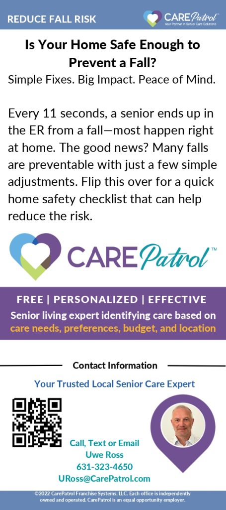 Hazards in the home and the work place can cause substantial risk to elderly and disabled people. Creating an environment that is safe, that can be easily navigated, and functional is critical to successfully aging in place. This resource from CarePatrol provides important information for creating that environment.